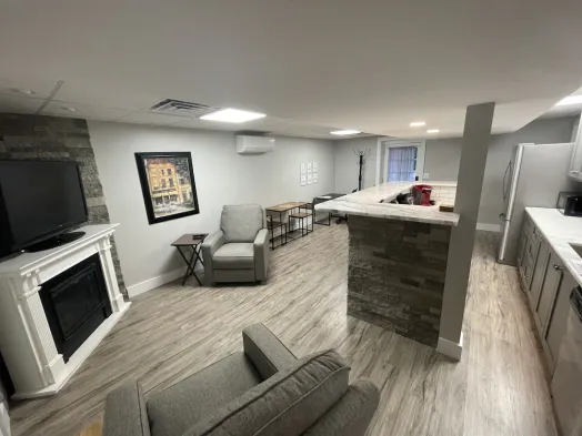 Modern apartment with updated amenities, outdoor fire pit, and dedicated workspace in a quiet Dalton neighborhood.