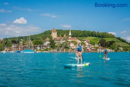 Stay near Lake Thun with a restaurant, garden views, and recreational activities like cycling and hiking.