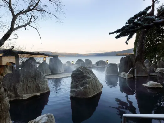 Relax at this lakeside ryokan featuring a full-service spa, hot springs, and fusion dining options.