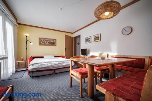 Centrally located hotel in Arosa with ski storage, restaurant, and convenient amenities for a comfortable stay.