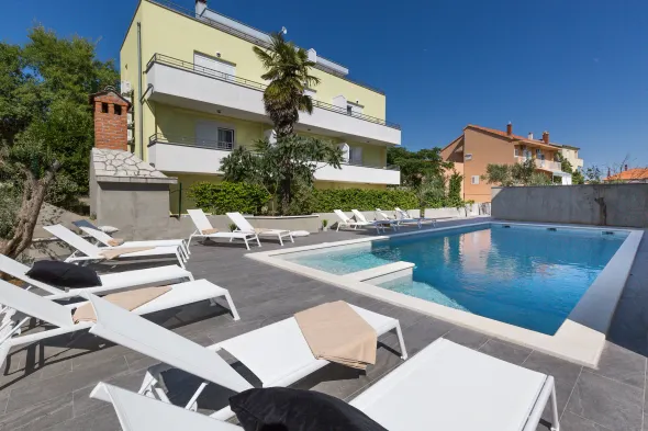 Modern apartment in Zadar with air conditioning, kitchenette, and garden views, just a short walk from local attractions.