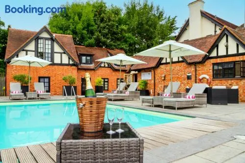 Luxury hotel with indoor and outdoor pools, spa services, and exquisite dining options in Wexham, Buckinghamshire.