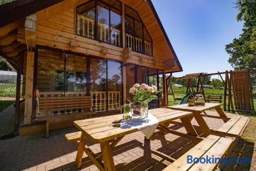 Holiday home with private beach, sauna, hot tub, and free parking in Balvi, Latvia. Guest rating of 9.5.