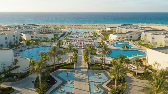 Luxury resort with private beach, 11 outdoor swimming pools, and multiple dining options in Hurghada.