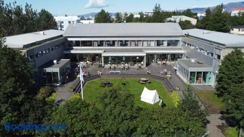 Stay in the heart of Reykjavik with a rooftop café, karaoke, and evening entertainment at this vibrant hostel.