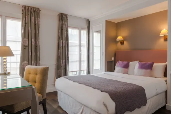 Charming hotel in Paris City Center with air-conditioned rooms and convenient amenities like concierge services and room service.