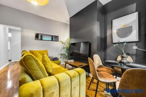 Centrally located apartment with a garden, free parking, and kitchens for a comfortable stay in Manchester.