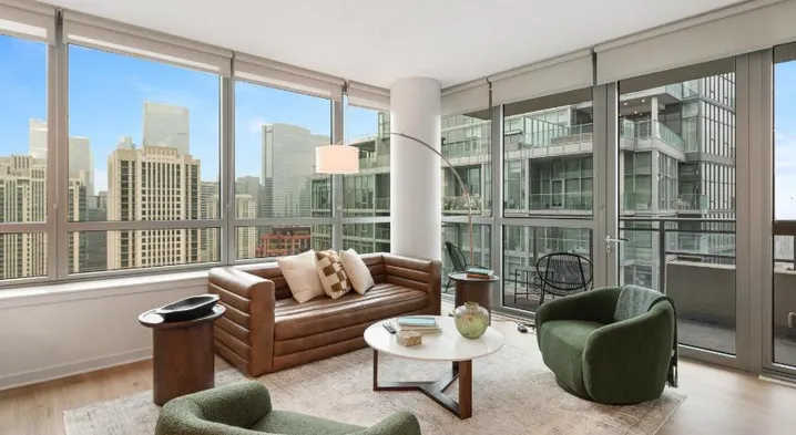 Experience luxury in Chicago with a seasonal outdoor pool, fitness center, and modern kitchens in spacious accommodations.