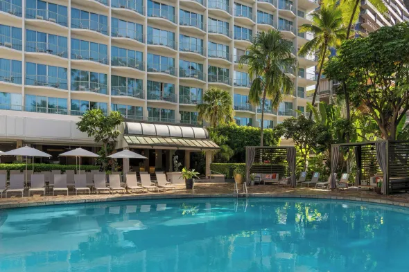 Experience a luxurious stay with an outdoor pool, fitness center, and a poolside bar in vibrant Waikiki, Honolulu.