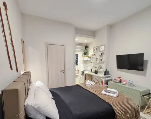 In hotels with kitchenettes near Thessaloniki International Airport, you can typically expect a range of amenities designed for convenience. Most kitchenettes include a microwave, mini fridge, sink, and basic cooking utensils such as pots, pans, and cutlery. Some might also feature a small stove or hot plate, coffee maker, and a toaster. This setup allows guests to prepare simple meals, store snacks and beverages, and enjoy home-cooked food during their stay.