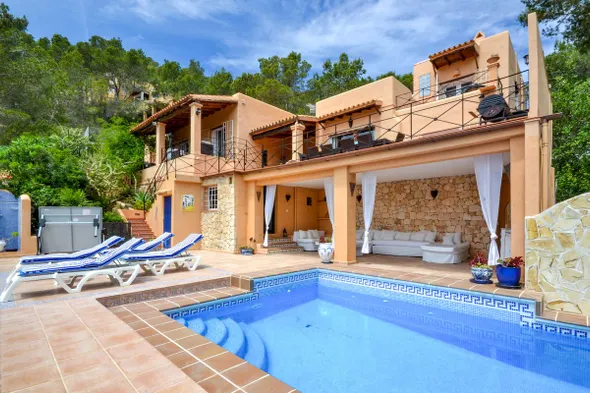 Modern villa with an award-winning design, private pool, and large garden in Sant Jordi, just minutes from beaches and restaurants.