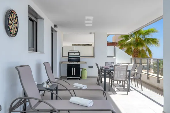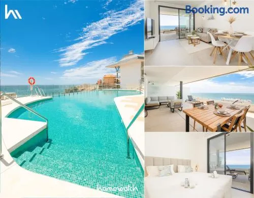 Modern apartment with a large private terrace, pool, sauna, gym, and sea views in Fuengirola
