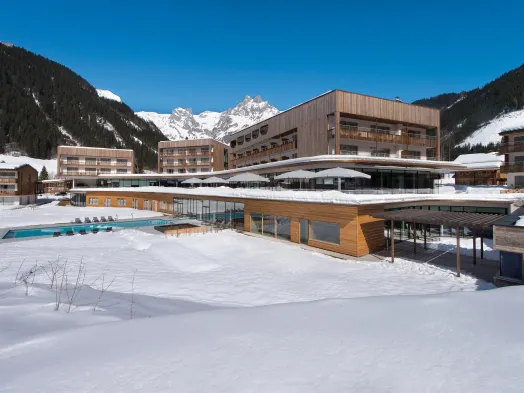 Luxury resort in Kaprun with 5 indoor and 6 outdoor swimming pools, spa services, and stunning mountain views.