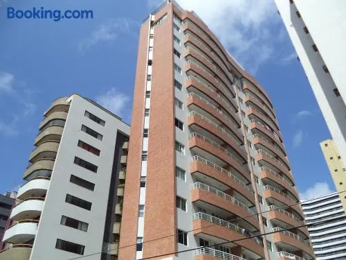 Beachfront aparthotel with 2 outdoor swimming pools, sauna, and Brazilian cuisine restaurant near Meireles Beach.
