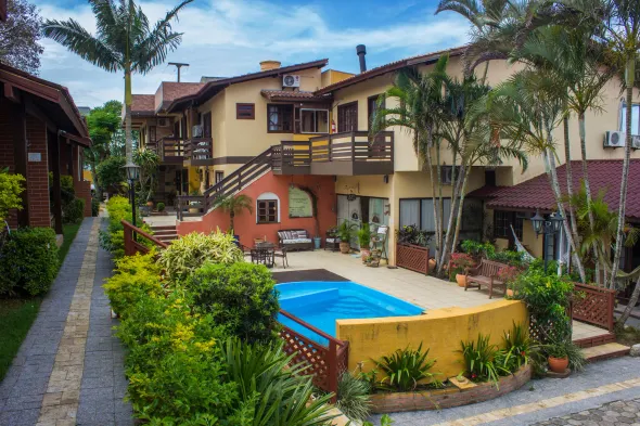 Hostel with outdoor pool, communal kitchen, and free Wi-Fi, located near Canasvieiras Beach in Florianópolis.
