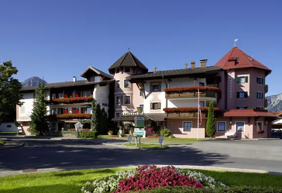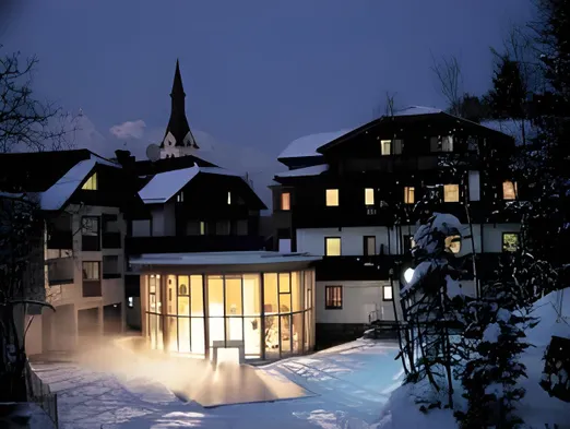 Hotel with indoor and outdoor heated pools, a restaurant, and wellness facilities in the scenic village of Igls, Tyrol.
