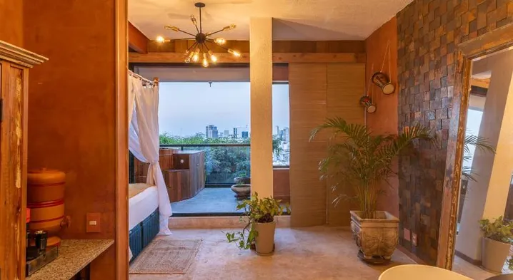 Luxury hotel with outdoor pool, spa services, and a restaurant offering garden views in Santa Teresa, Rio de Janeiro.