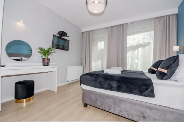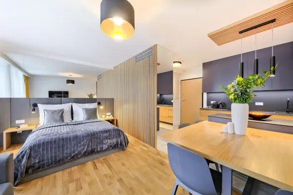Brand new apartment with two balconies, fully equipped kitchen, and located in the quiet Podgórze neighborhood of Kraków.