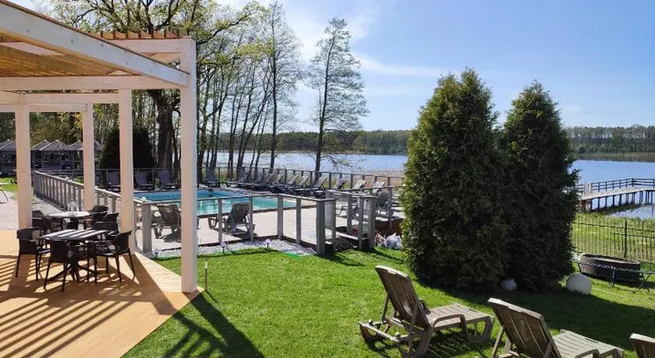 Guest house with restaurant, outdoor fireplace, and activities like hiking and fishing in Zielona Gora.
