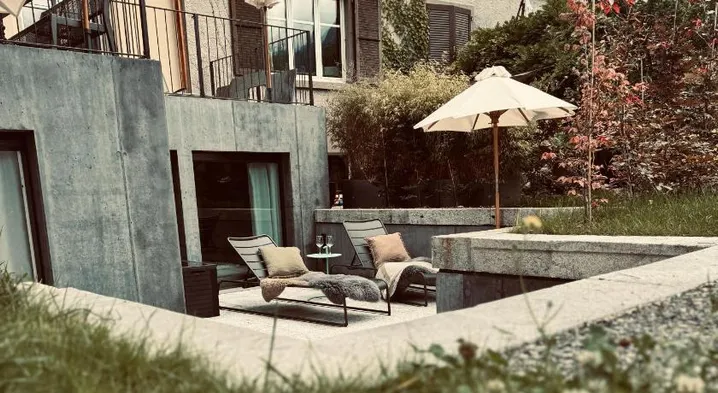 Enjoy a stay with rooftop private hot tubs, sauna, and an outdoor heated pool near Lake Brienz.