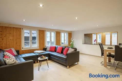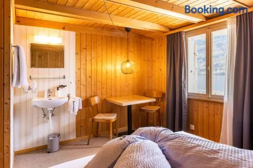 Enjoy a stay with rooftop private hot tubs, sauna, and an outdoor heated pool near Lake Brienz.