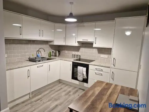 Modern apartment with garden views, free parking, and family room in Letterkenny, Ireland.