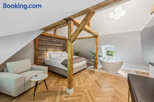 Luxury hotel with a full-service spa, indoor pool, and stunning views near Elbe Sandstone Mountains.