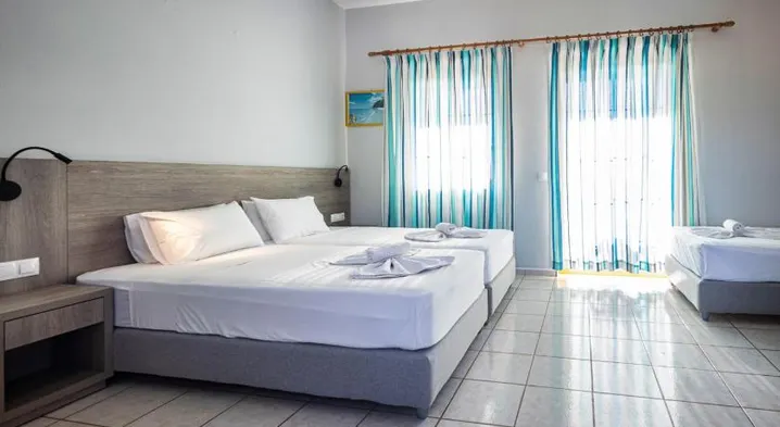 Family rooms in hotels in Plakias typically come equipped with a variety of amenities to ensure a comfortable stay for all family members. Common features include multiple bedding options such as queen beds along with additional twin beds or bunk beds, allowing ample space for children. Many family rooms also offer kitchenettes or kitchen facilities, enabling families to prepare their own meals. Furthermore, you might find conveniences like a mini-fridge, microwave, and seating areas that promote relaxation. Additionally, certain hotels provide entertainment options such as television with family-friendly channels, and free Wi-Fi to help keep everyone entertained during downtime.