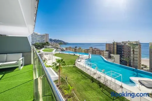 Enjoy a family-friendly stay with a swimming pool, beach access, and convenient airport shuttle services in Benidorm.