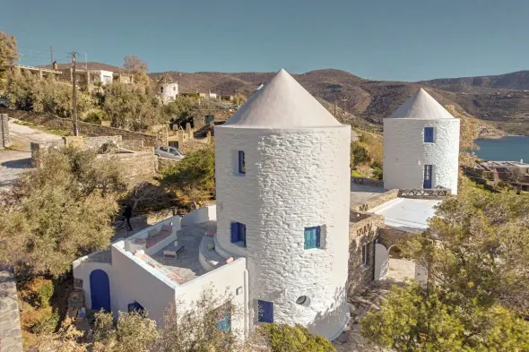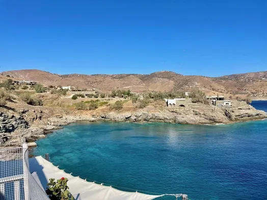 Luxury beach hotel with private pools, full-service spa, and multiple dining options in Vroskopos Bay.