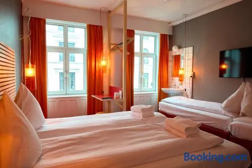 Comfortable hotel in Copenhagen with bike rental, concierge services, and a bar for a pleasant stay.