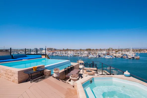 Luxury resort with outdoor pool, spa services, and stunning bay views in Newport Beach.