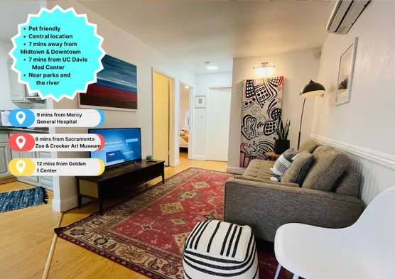 Newly remodeled apartment in West Sacramento with air conditioning, laundry service, and Netflix for a memorable stay.