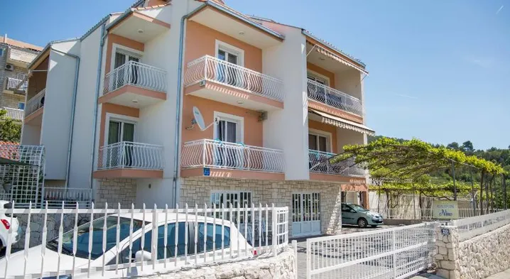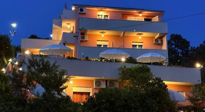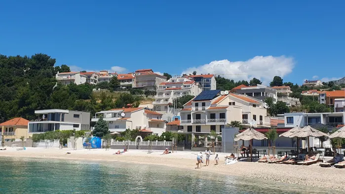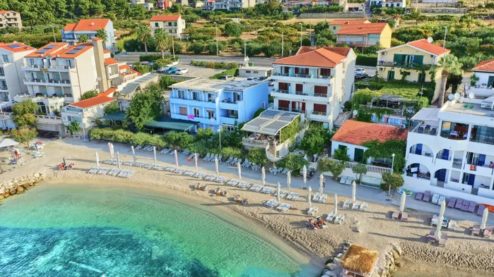 Beachfront aparthotel with swimming pool and modern amenities, located near Port of Split and Diocletian's Palace.