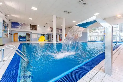 Relaxing hotel with indoor and seasonal outdoor pools, spa services, and close proximity to Kołobrzeg Beach and parks.