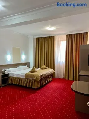 Hotel with outdoor tennis courts, spacious rooms, and a restaurant in Craiova, Romania.