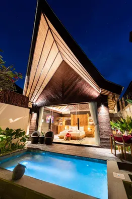 Luxury villa with outdoor pool, hot tub, and concierge services in Legian, Kuta.