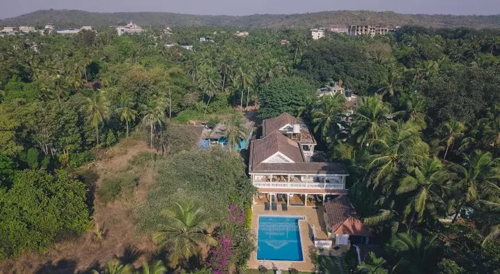 Family-friendly villa with outdoor pool, fitness center, and bicycle rental in Arpora, Goa.