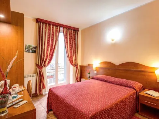 Comfortable hotel in Rome city centre with air-conditioned rooms and convenient amenities like room service and free Wi-Fi.