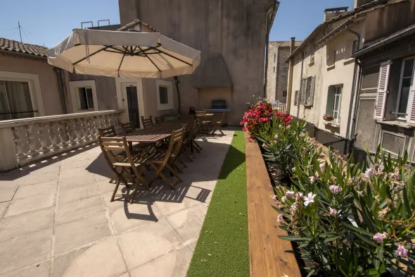 Centrally located hotel in Avignon with a restaurant, terrace views, and family-friendly amenities.