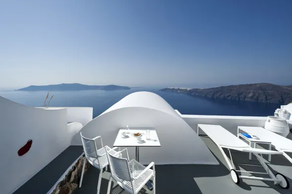 Experience luxury at this 5-star hotel with an outdoor pool, spa services, and stunning views of Santorini Caldera.
