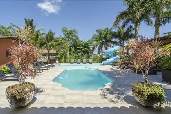 Relax in a beach hotel with an outdoor pool, restaurant, and air-conditioned rooms just steps from Jurere Beach.
