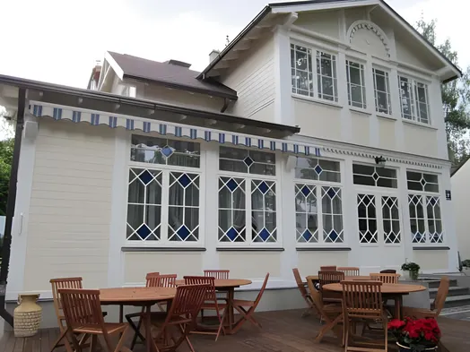 Luxury hotel with a full-service spa, private beach, indoor pool, and four restaurants in the heart of Jurmala.