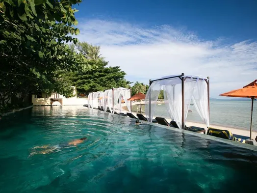 Beachfront resort with outdoor pool, restaurant, and stunning views in Koh Phangan.