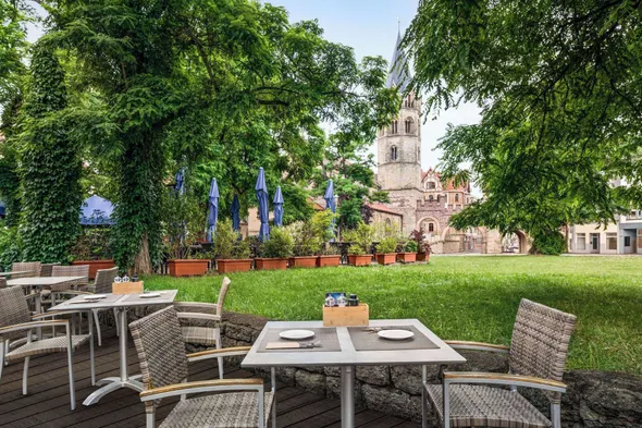 Enjoy a central stay in Erfurt with a terrace, garden views, and modern amenities including tablet computers in every room.