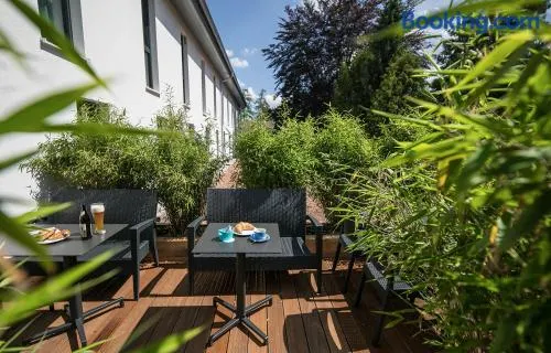 Stay in a comfortable hotel with a terrace, garden views, and free self-parking in Munich's Thalkirchen district.