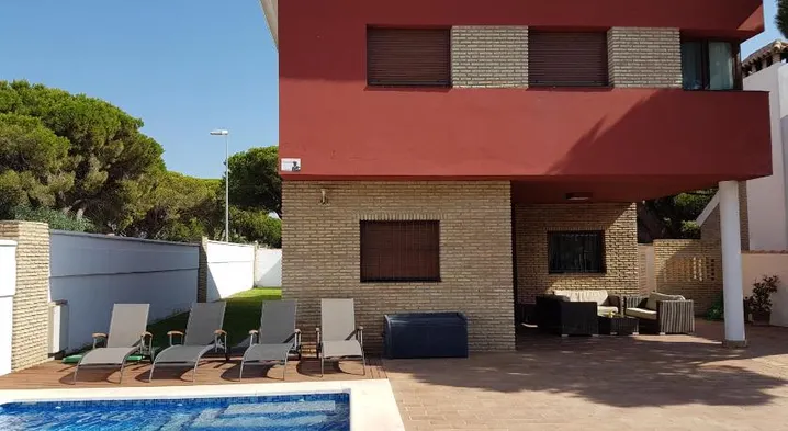 Villa andaluza en zona Playa Barrosa con piscina y barbacoa