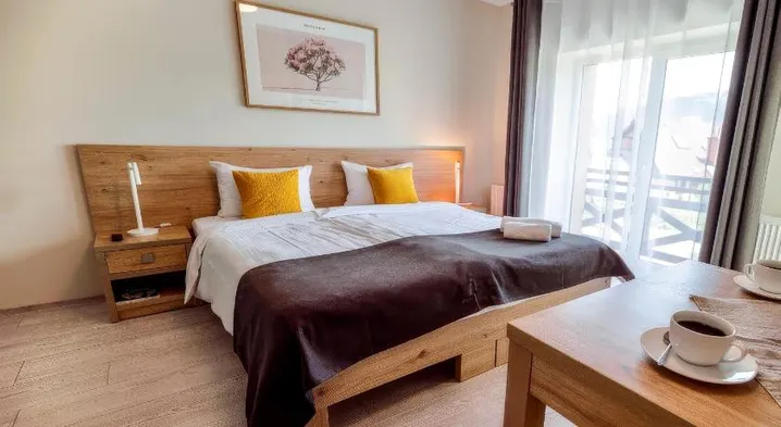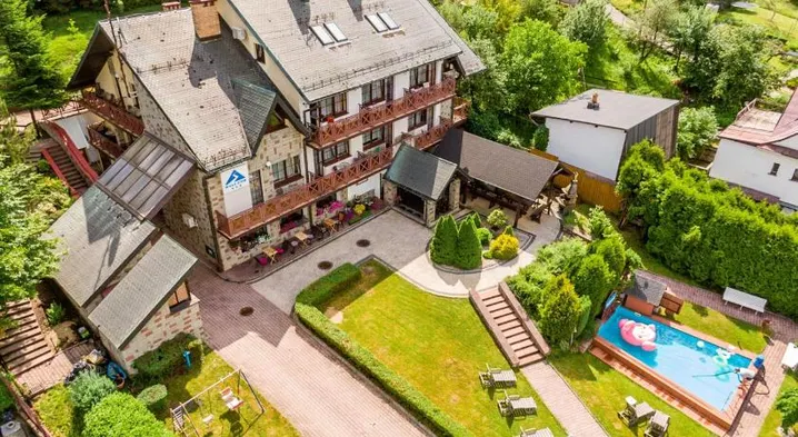 Relax in a spa aparthotel with lake views, swimming pool, restaurant, and outdoor fireplace in Wisla, Poland.