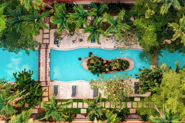 The atmosphere at hotels with gardens in Sanur tends to be peaceful and inviting, often characterized by a harmonious blend of natural beauty and luxury. Guests often find themselves surrounded by blooming flowers, serene water features, and vibrant greenery, creating a relaxing environment away from the hustle and bustle of busy tourist areas. The gardens serve as an extension of the common areas, providing cozy nooks for reading or meditation while enhancing the overall aesthetic appeal of the hotel. This tranquil ambiance encourages guests to unwind and connect with nature during their stay.