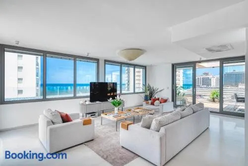 Experience a relaxing stay with an outdoor pool, hot tub, and beach access just steps away in Tel Aviv.